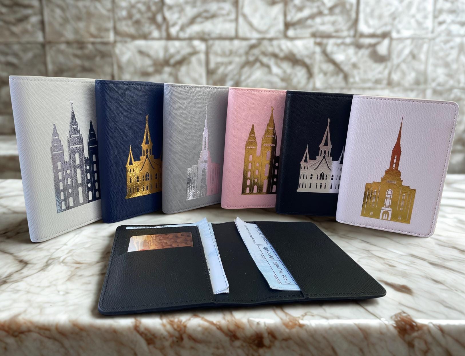Why You’ll Love These Wallets: + Super Organized: Holds up to 3 temple recommends and 30 proxy cards—no more paperclips or messy envelopes! + Stylish: Made from high quality simulated leather embossed in gold or silver foil for a sleek, sophisticated look. +Personal: We make it to order according to your specifications. Choose your color, cover image, and embossing in silver or gold. Nearly 100 variations to choose from! + Protection: Keeps your cards safe from being lost, damaged, or crushed by the daily chaos. + Supporting a Great Cause: We are a small family business and all profits (after tithing) go directly towards our kids HXP Humanitarian trips or missions- nothing else!