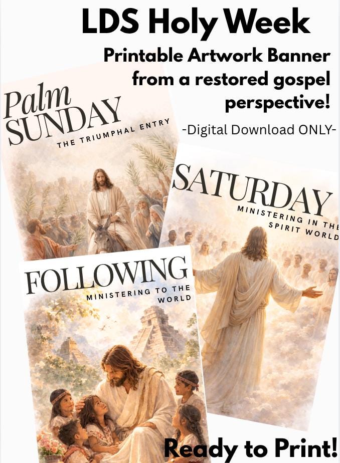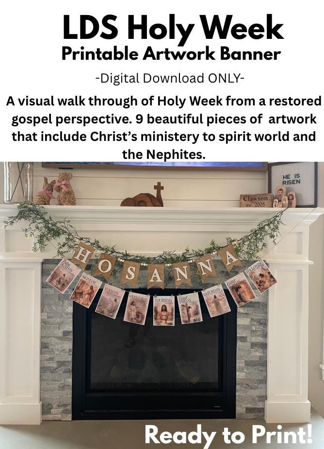 This Holy Week devotional banner is a unique, Christ-centered way to walk your family through the final days of the Savior’s life—from the Triumphal Entry to the Resurrection—and beyond. Thoughtfully created from an LDS perspective, this set also includes Christ’s ministry in the spirit world and His visit to the Nephites, helping tell the full Easter story in a meaningful and complete way.